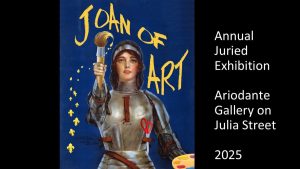 “The Joan of Art show and contest gives us an opportunity to meet new artists and to collaborate with a unique arts organization, The Joan of Arc Project. It is a win/win for all of us to build an annual show around this theme. The show continues to grow each year, and some of the artists who participate in this show end up selling other pieces at Ariodante year-round,” said Reed.