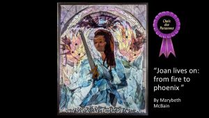 - Mary Beth McBain “Joan Lives On – from fire to Phoenix”. Paper mosaic.